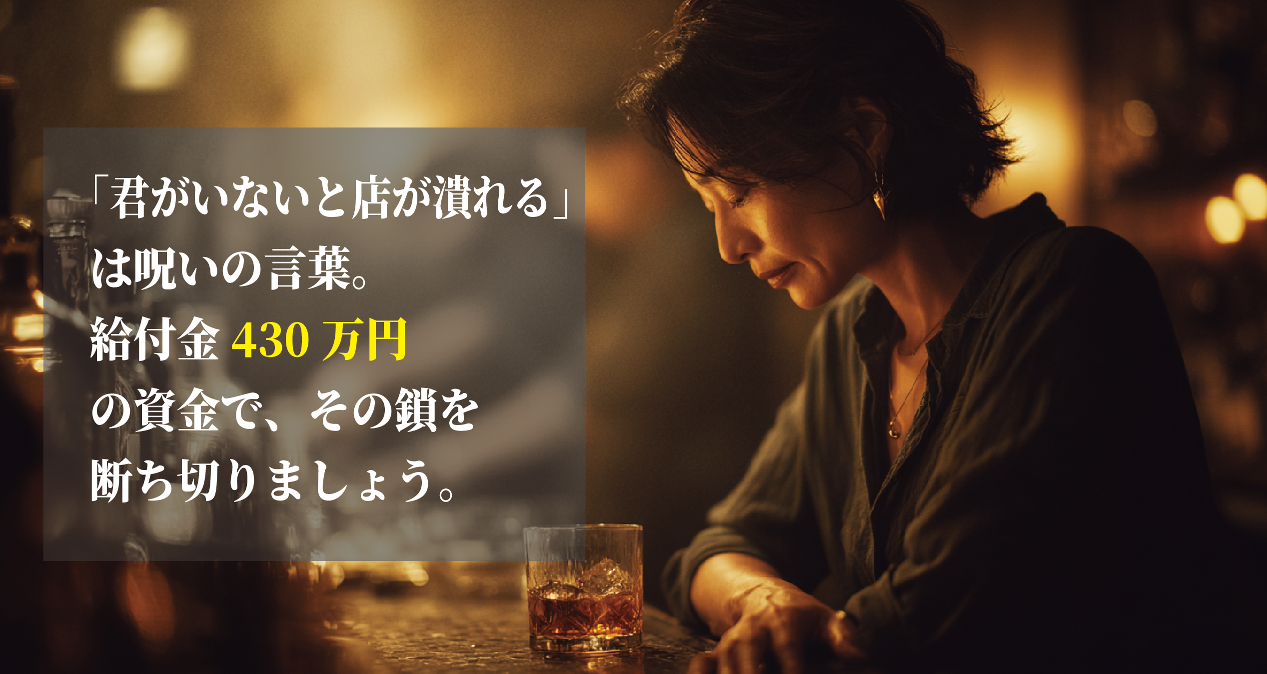 カウンターの端で、力なく焼酎の水割りを回す女性。